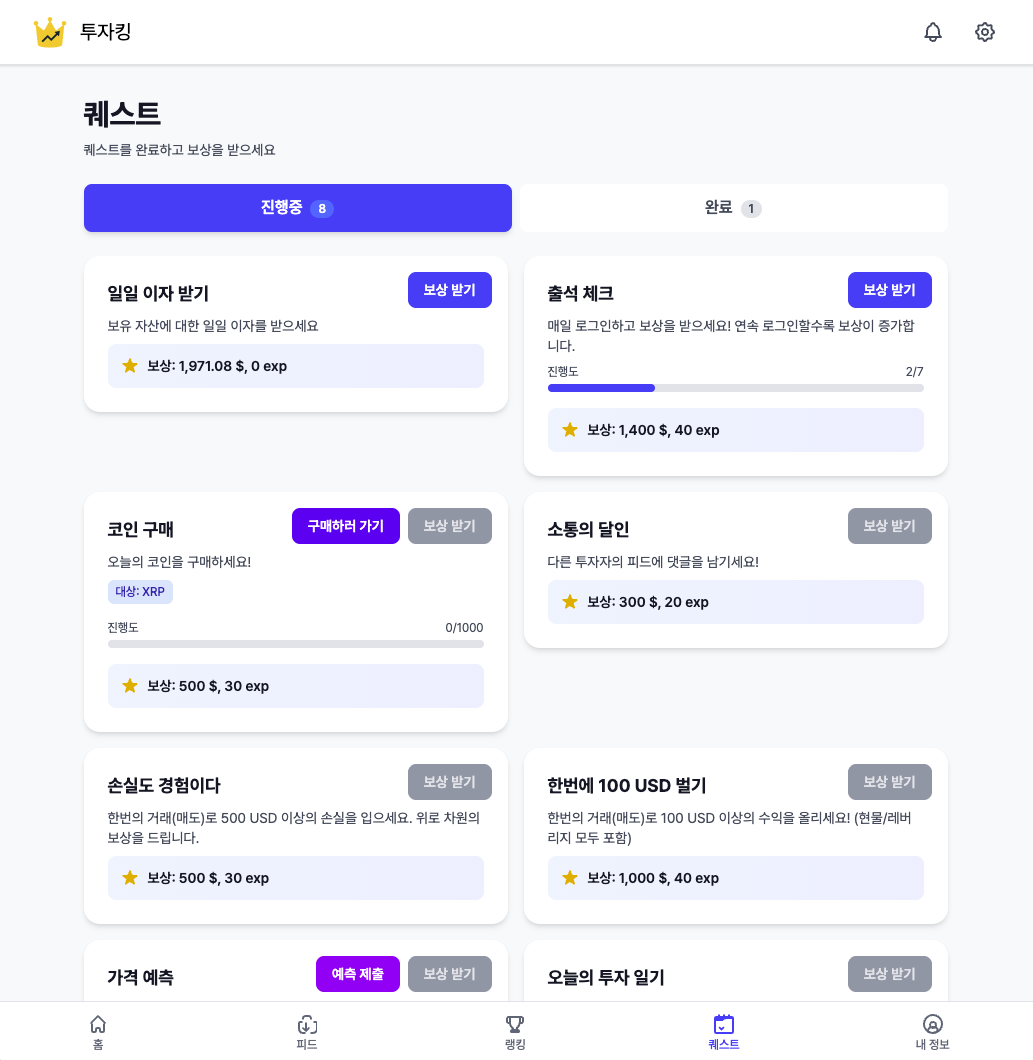 투자킹의 퀘스트/레벨/티어 시스템은