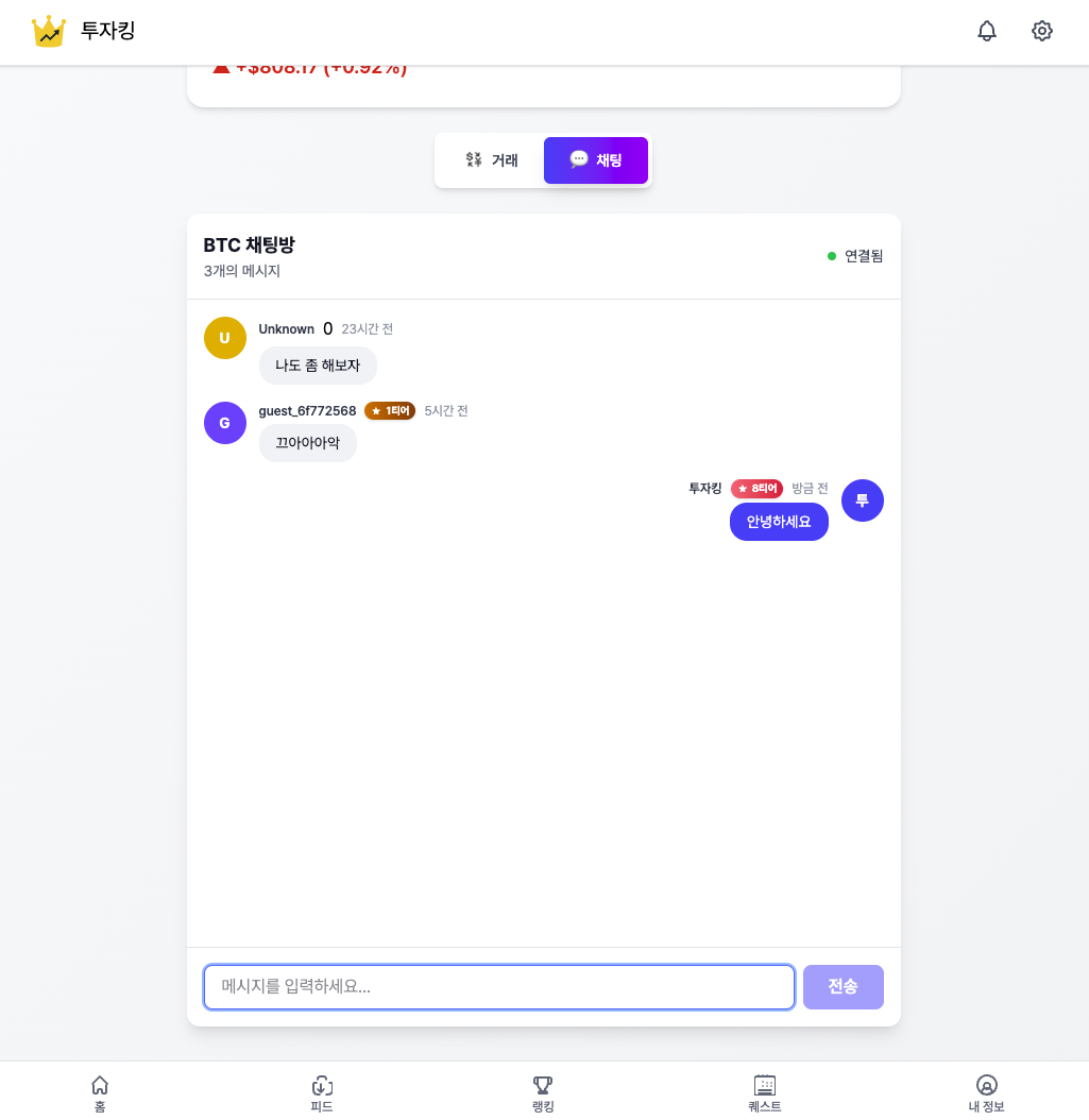 소셜 기능 중에서 가장 “실시간”을 많이 타는 부분이 코인별 채팅방이다.