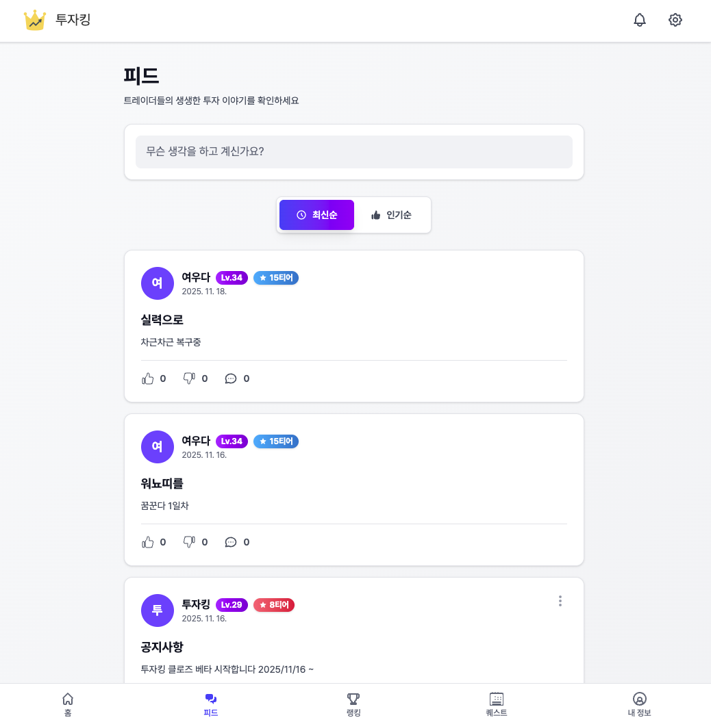 | 1인 개발 모의투자 커뮤니티 "투자킹" 소개 (1) | 2025.11.25 |