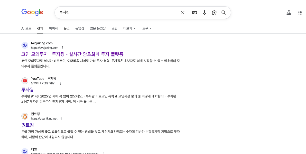 그리고 며칠 뒤, 검색창에 투자킹을 쳐봤다.